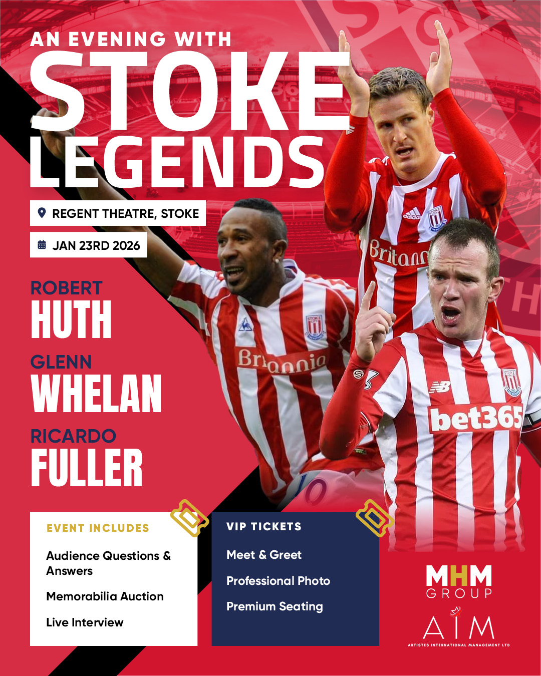 Celebrate the spirit of Stoke City with an unmissable night featuring three iconic figures from the club’s golden era—Robert Huth, Glenn Whelan, and Ricardo Fuller.